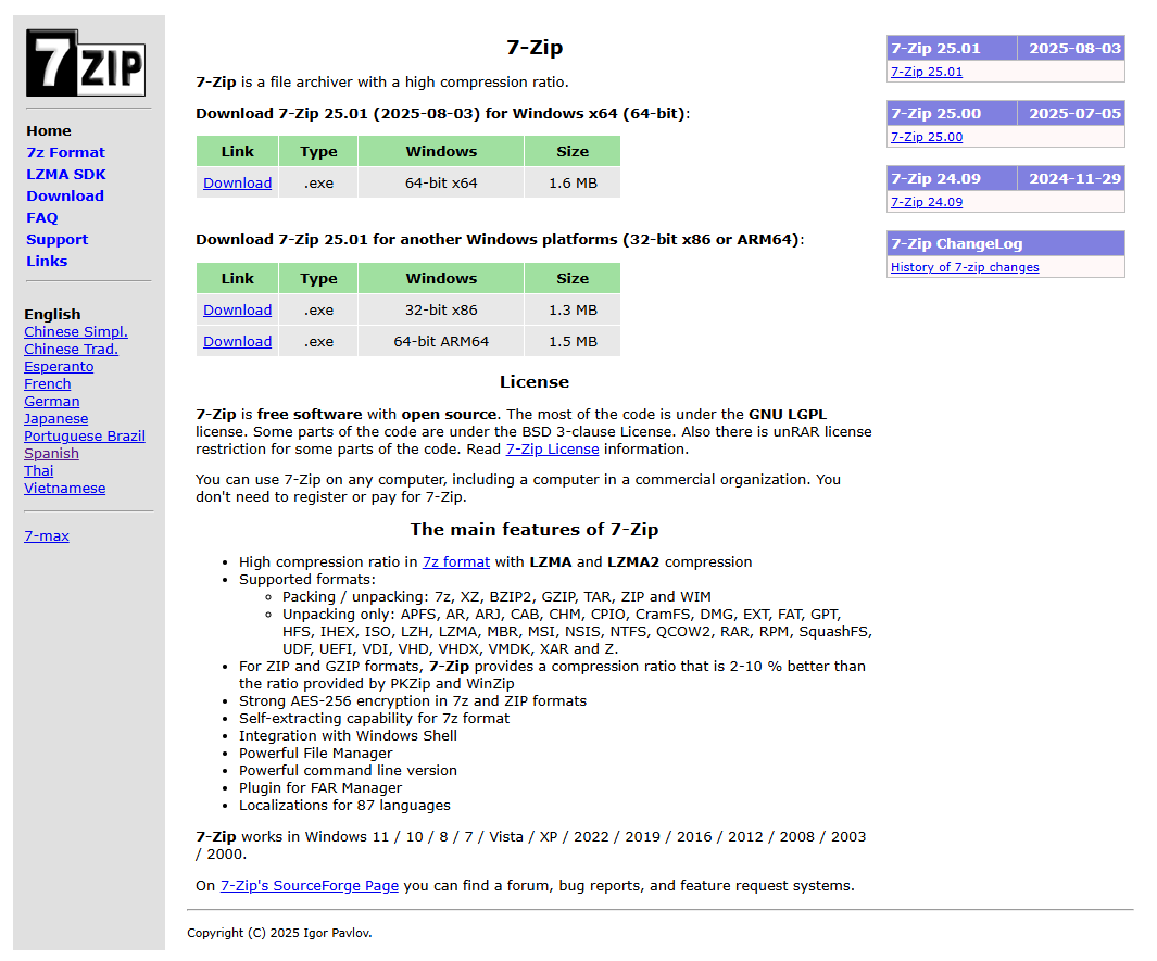 | 홈페이지 | https://www.7-zip.org/ |